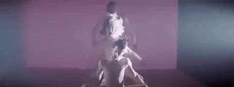 Dancers dancing together in a specific blocking, or using objects to achieve a visual effect in a choreography.
