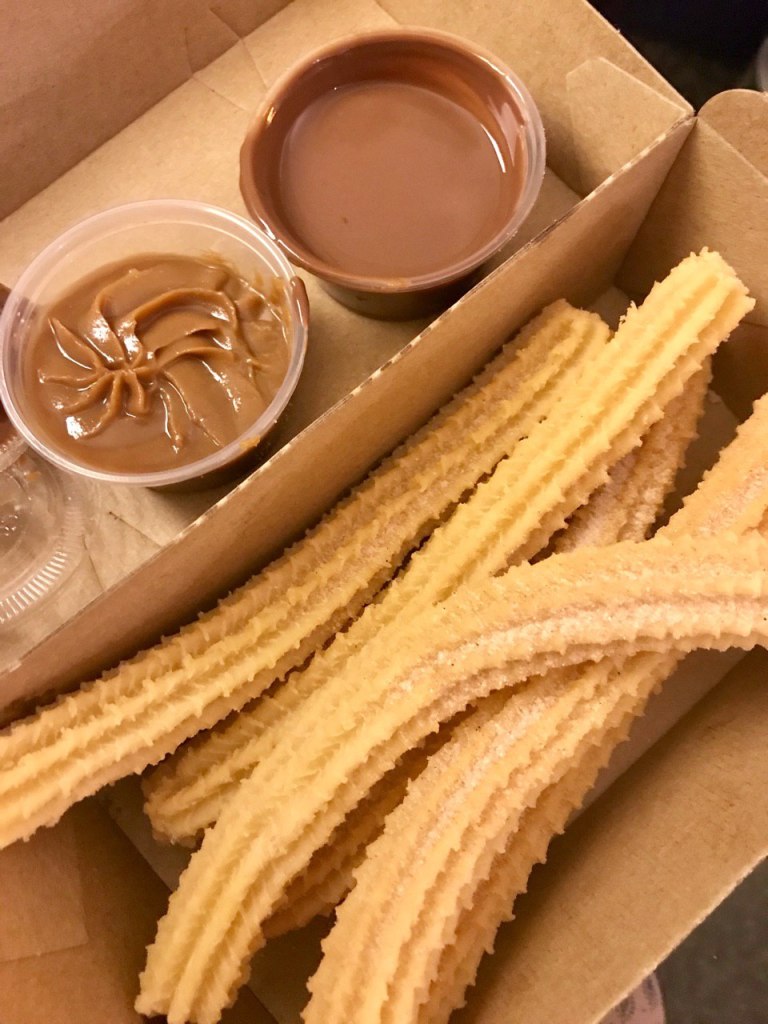 When we left, we thought, why not get some food here before we head back? So we headed to San Churros, and only realised there were many orders before us after we ordered.