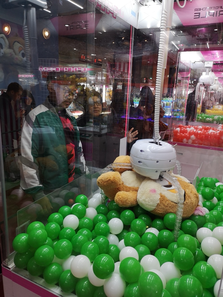 It is also fun if you watch the experts play. Their strategy was to target the same plush toy over a few rounds and slowly push it towards the winning hole. And it eventually drops down to win the prize! One tip is to get the staff to help set up the plush toy you want perfectly for you (they do this manually), and then hope your skills make it. Whatever the outcome, it was really fun.