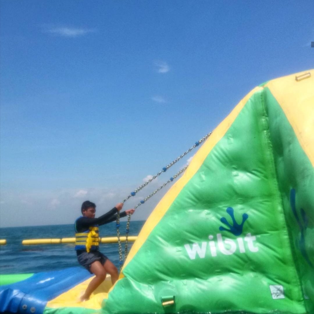 As the name suggest, you can enjoy both land and water activities here. You must try their inflatable water park, where you go through obstacles like you are in the dream team. There are swings, wall climbing, monkey bars, and slides. There’s even a trampoline in the middle of the sea!