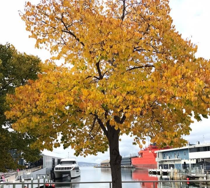 We walked along the Hobart Rivulet Trail, which passes by historic landmarks. We started along the river stream, set against a backdrop of autumn leaves and cool weather.