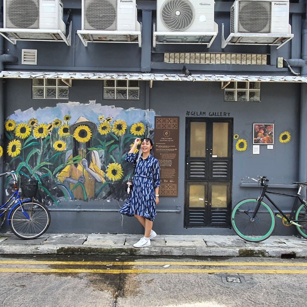 Gelam Gallery has two lanes along Bussorah Street, near the Sultan Mosque. These lanes used to be back alleys of the shops where business owners load their goods from the suppliers and throw their waste. There are still dustbins and some smelly segments, but circumstances are the same overseas too. I guess it is the nature of murals and graffiti.