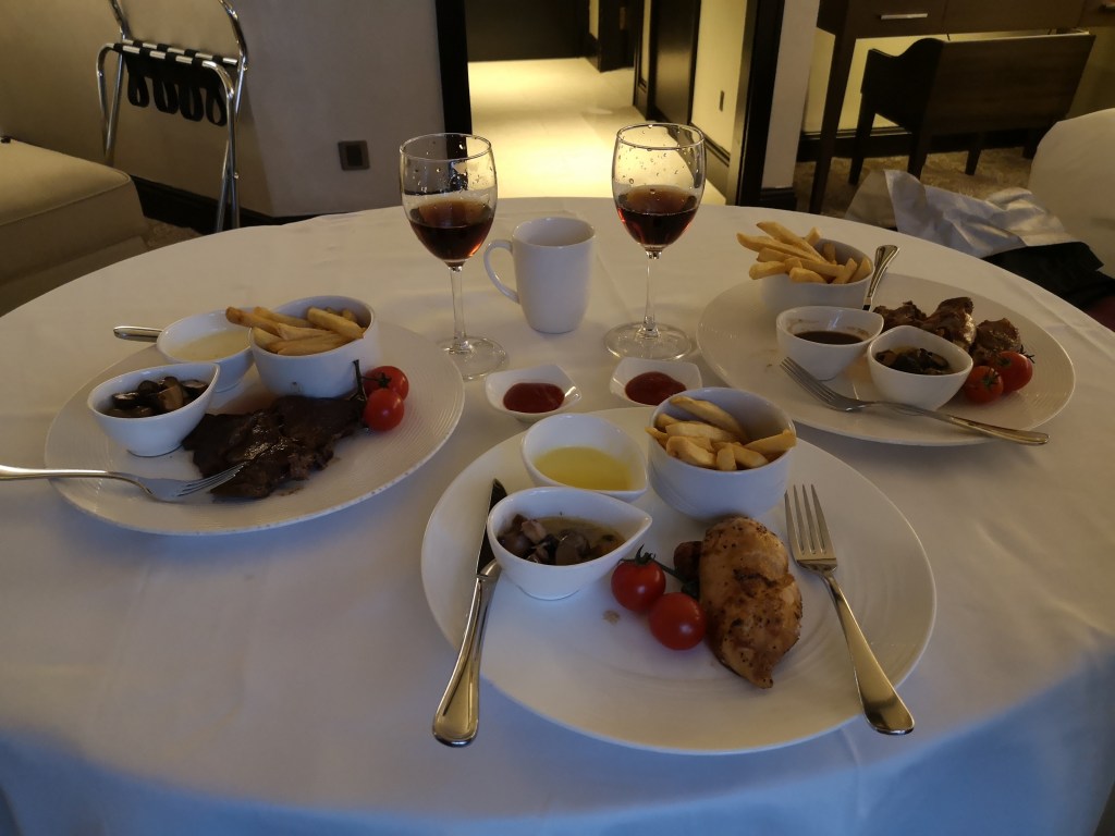 We ordered in-room dining to use up our $100 dining vouchers, and didn’t need to pay anything extra too (although I thought we had to pay a bit more as it exceeded the voucher amount).