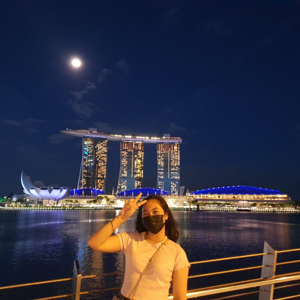 Our room received the morning sun, and we can only see a mirror of the sunset as we had the city view room, not the MBS side. While the balcony is narrow, and you can’t really do much there, we did have fun trying to capture our moments.