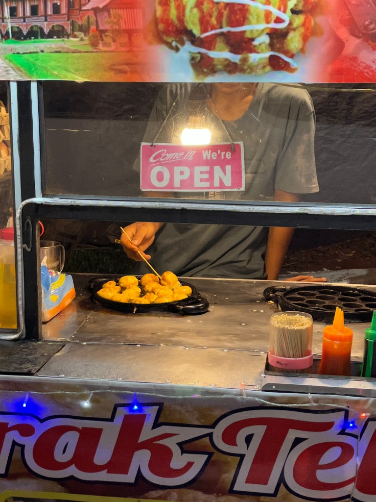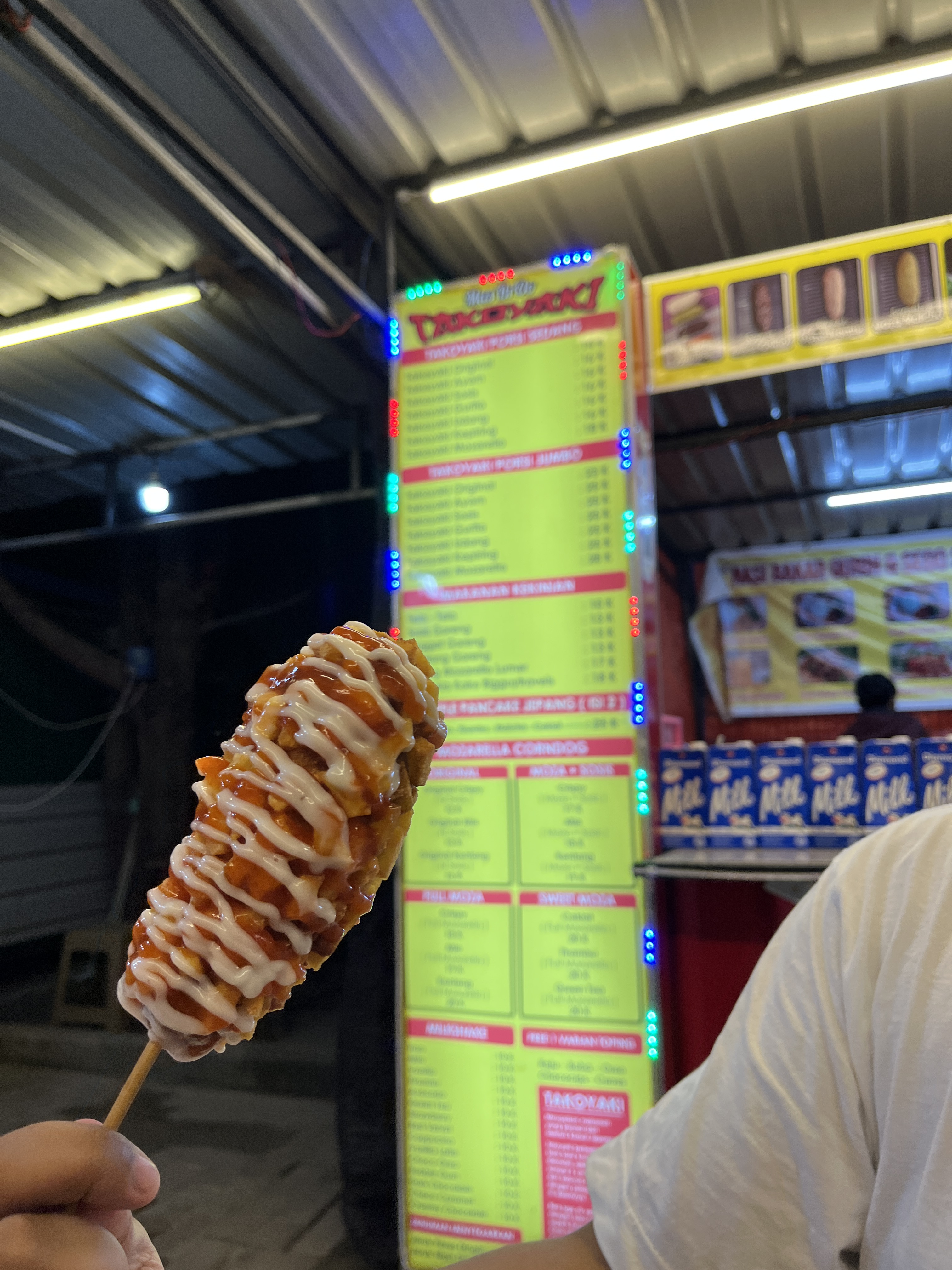 You can find repeated stalls along the way, but it is really a long street. There is a wide range of food, from Indonesian food, to burgers, to corndogs, chicken, sushi, grilled food, and my facourite CORN! And the bubble tea stalls mostly include free pearls, priced at only 10,000 rupiah (S$0.90).
