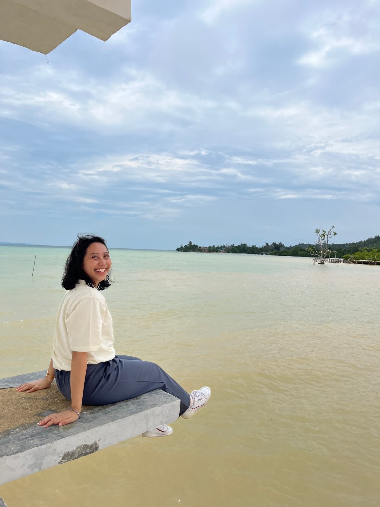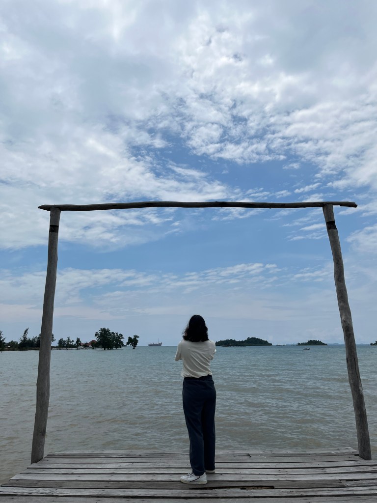 Many different photo spots. These include wooden structures a bit in the sea (there is a conrete path to get to those wooden structures), a swing by the sea, some small cute structures along the beach, and this cool-looking two-storey pagoda of sorts with a vantage point.The sand is nice, but the seawater is dirty.