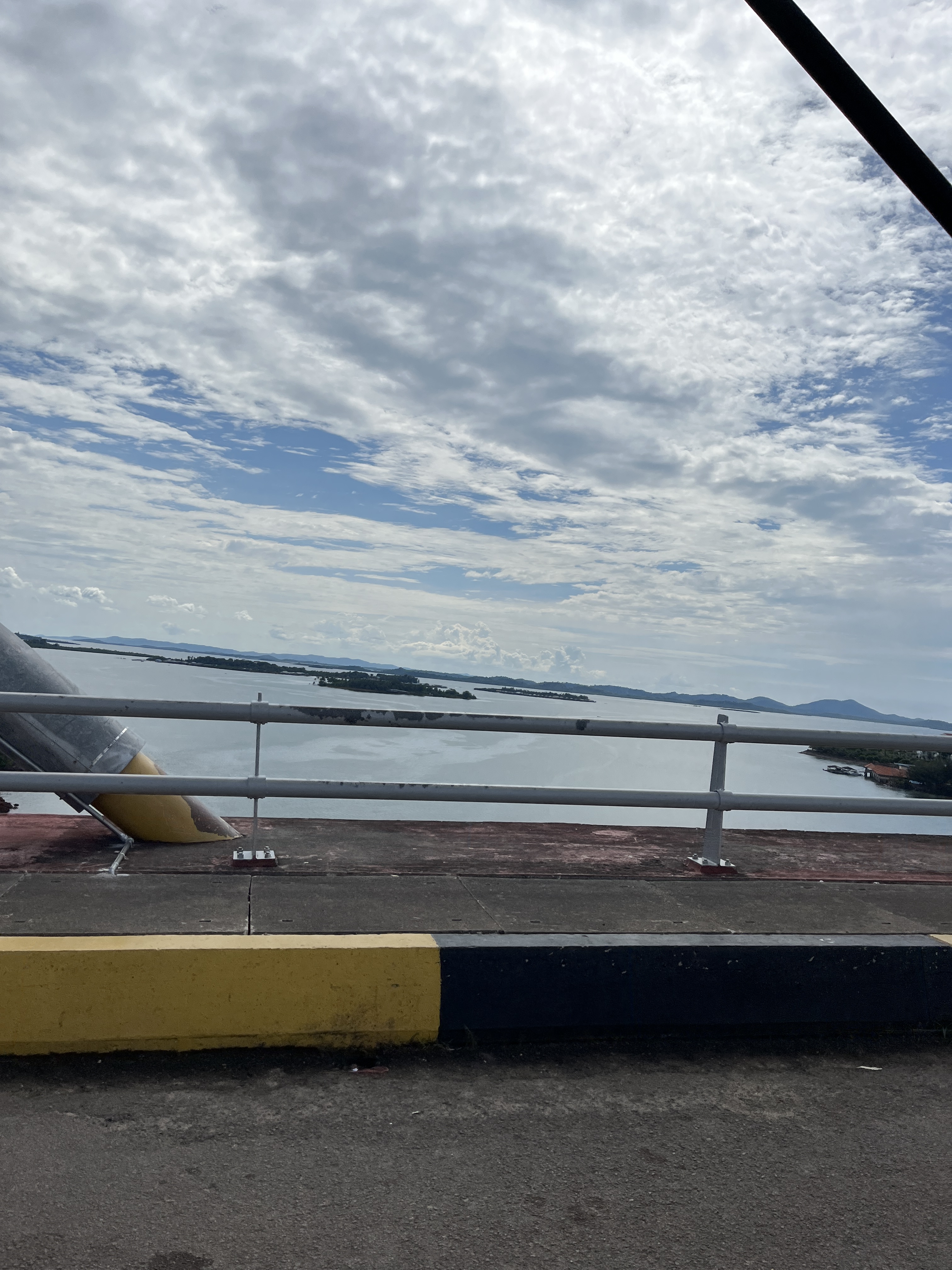 The journey came with some pretty views, like the sea and the surrounding small islands when we crossed the bridges on the road. The green landscape were accompanied by hills, agricultural land, some military sites, small kampongs, and lush trees.