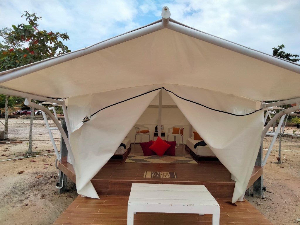 There is a restaurant there, and live music and DJ at night! You can actually order a bbq which will be set up right in front of your glamping tent. Other facilities include a beach volleyball play area etc. There is also a small mangrove!They are currently building new toilets beside the glamping area, and another resort of sorts at the end of the beach too.