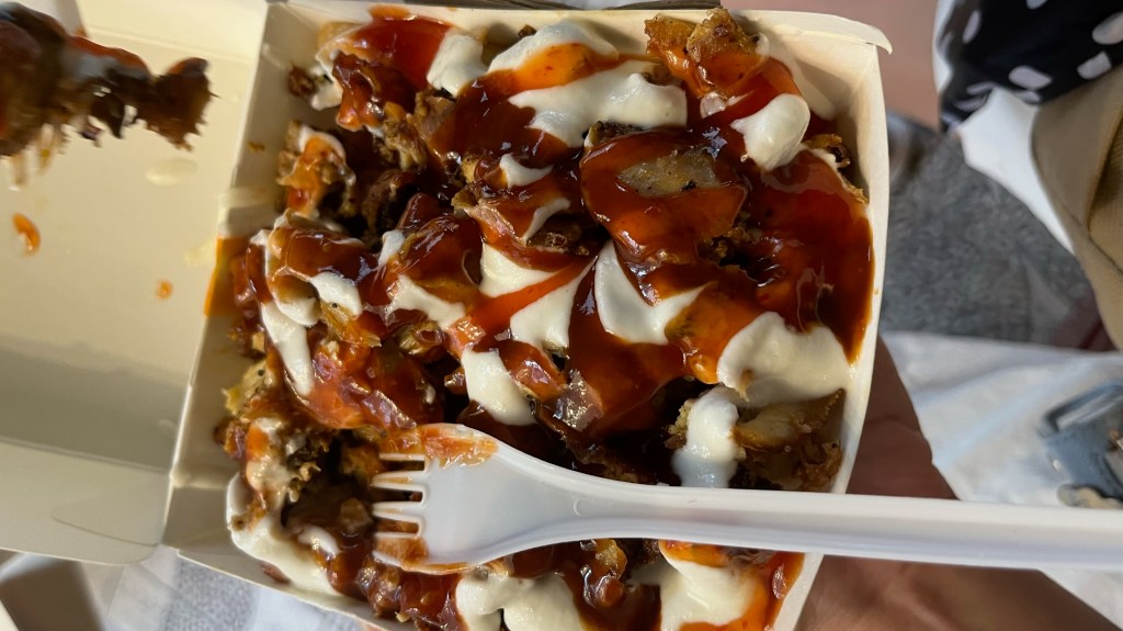 There were lots of Japanese, Korean, Taiwanese and Thai food. We tried this popular Korean cheese coin bread, which seemed to be only available at this market, as I didn’t spot it at other places.