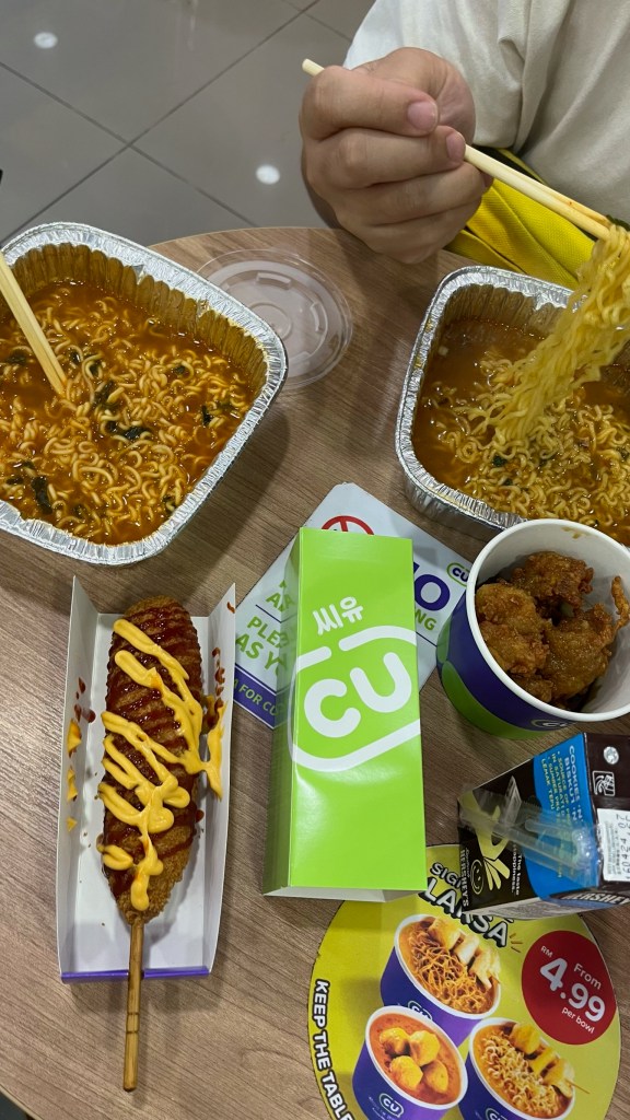 A franchise of the Korean convenience store, they had their corndogs, odengs, (fish cake) and instant noodles corner, which I’ve always wanted to try. Luckily, most of the instant noodles were halal. It was a fun experience.