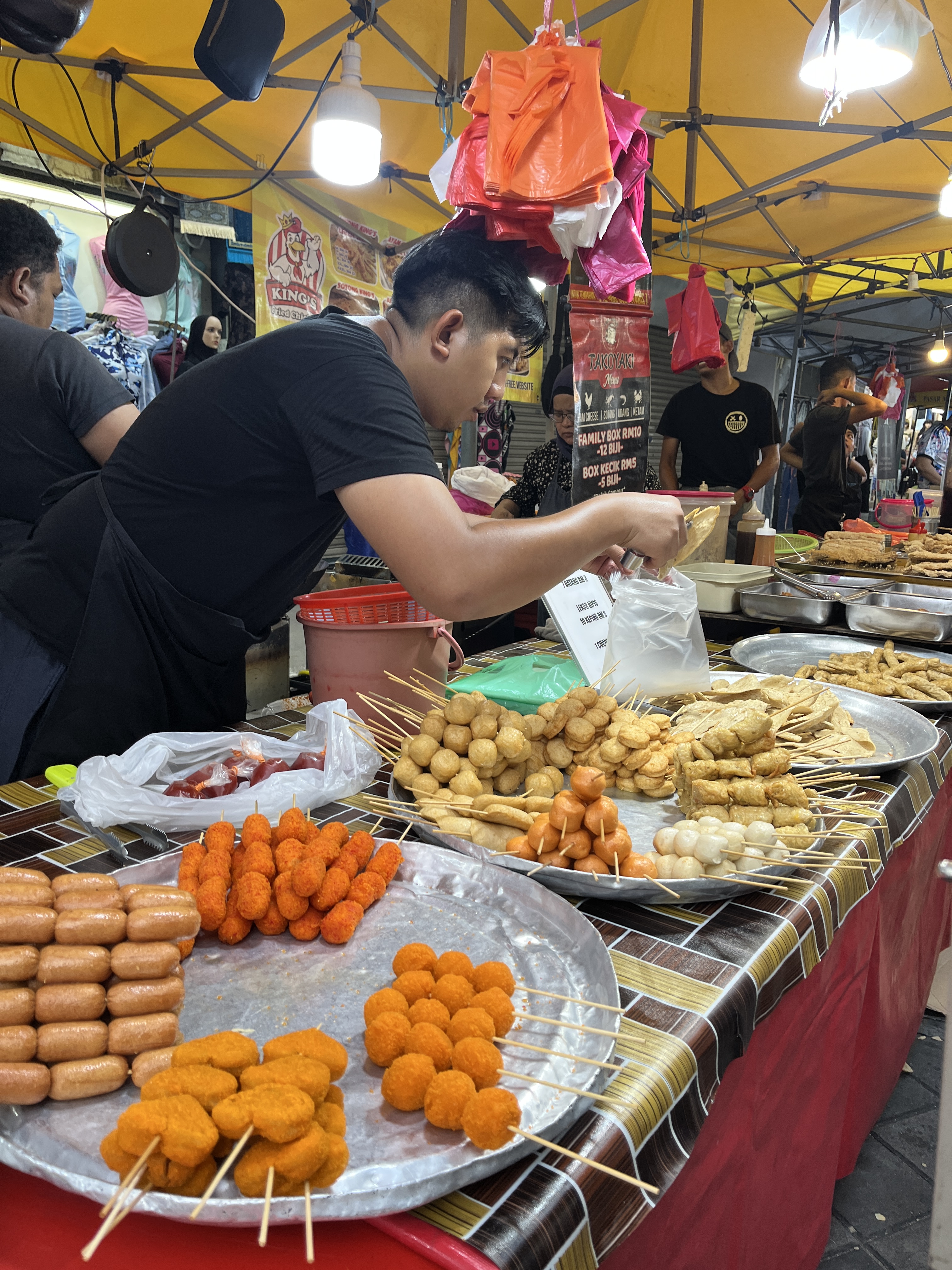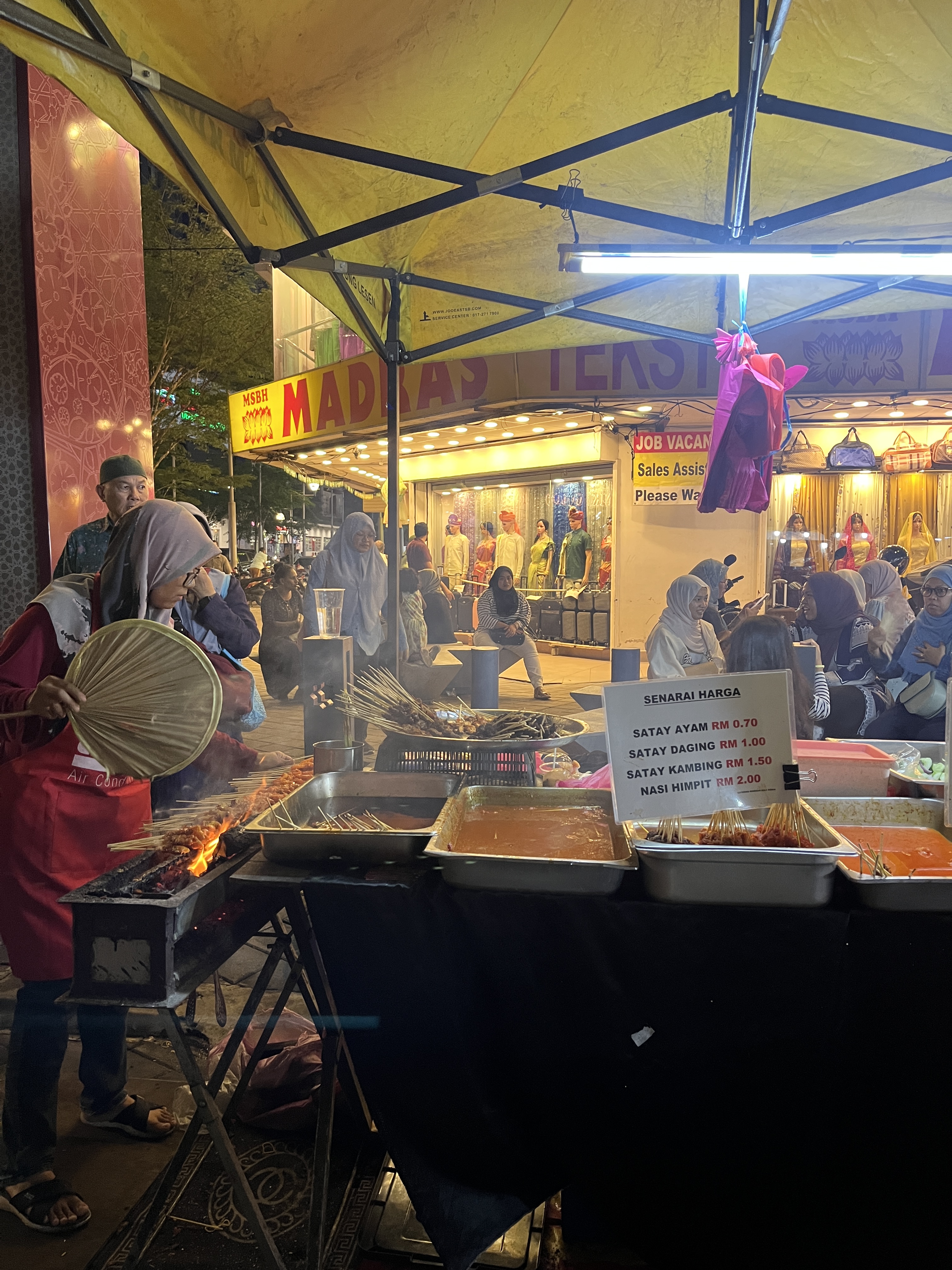If you are looking at local street flavours, check out the night market at Masjid India. You can find Malay kueh and dishes, and keropok (crackers). There’s also lots of drinks options and Chinese and Indian food in the area too. We also ordered satay.