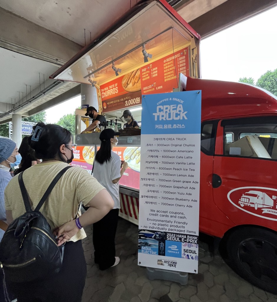 When we were at a music festival, there was a row of food trucks serving various types of food. We had to get churros and fruit ade!