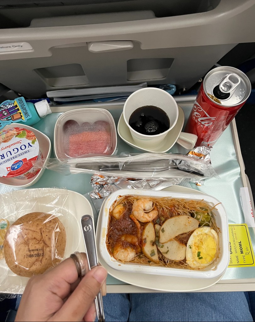 We requested for a Muslim meal in advanced and got dry laksa. The seasoning was quite balanced, and the sambal was not spicy. I was glad it was not the usual curry-based flight meals.
