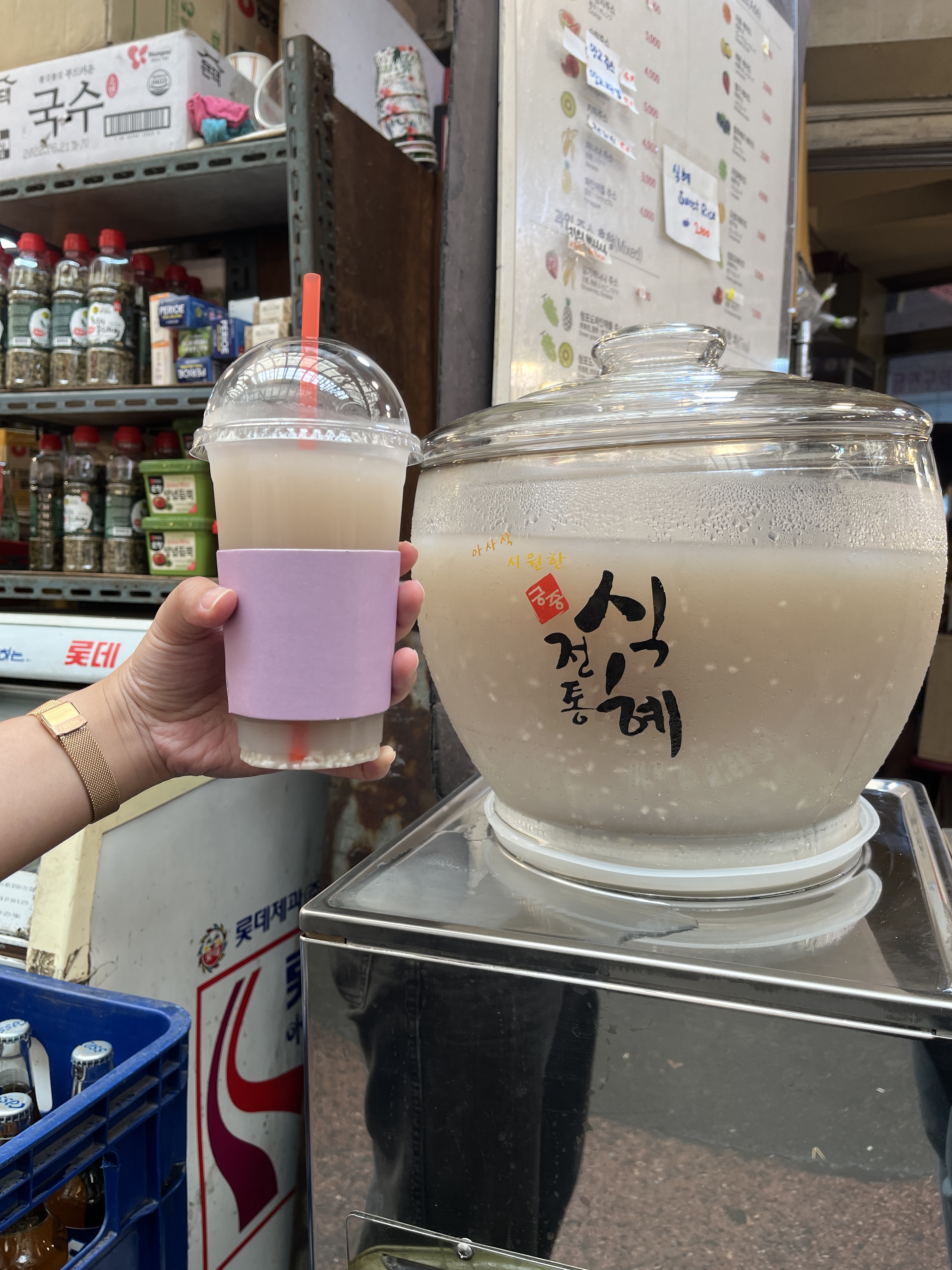 Get a cup of sikhye, rice cakes, twisted Korean doughnut (gwabaegi), and the famous hotteok to snack on too! These should be generally ok to try, but up to your own discretion.