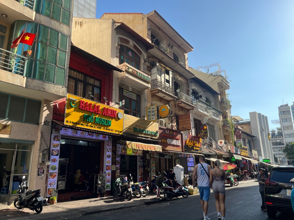 There is a street in Ho Chin Minh dubbed as the “Malaysia Street” or “Saigon Halal street”, which is located right beside West Gate of Ben Thanh Market. One can find an abundant choice of halal food, hotels, cafes, souvenirs and tailored clothes along this 100m street!