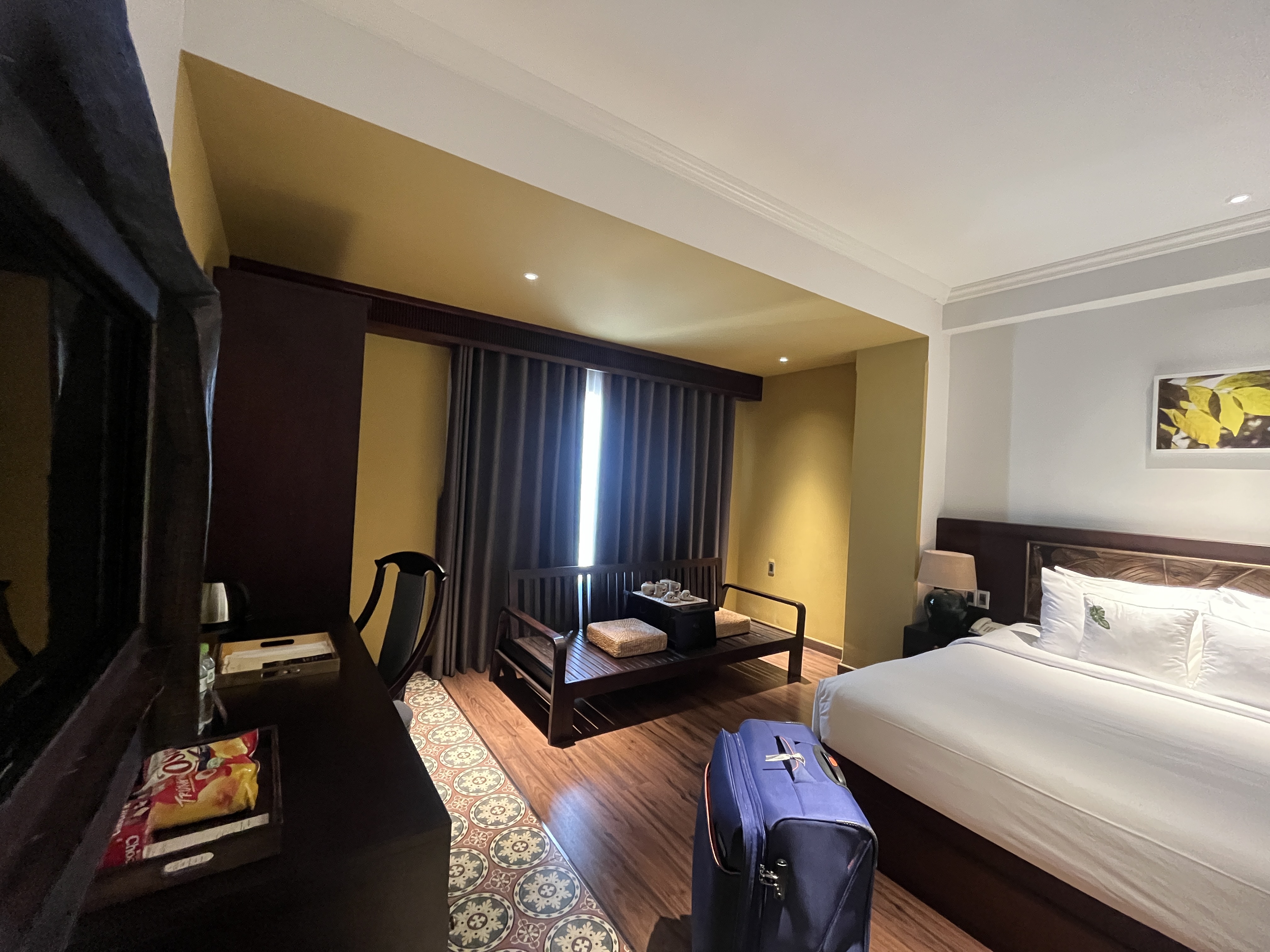 The room is huge and comfy. Different rooms had different layouts, and they were all pretty. My room had like a traditional bench, which was vibes, really.