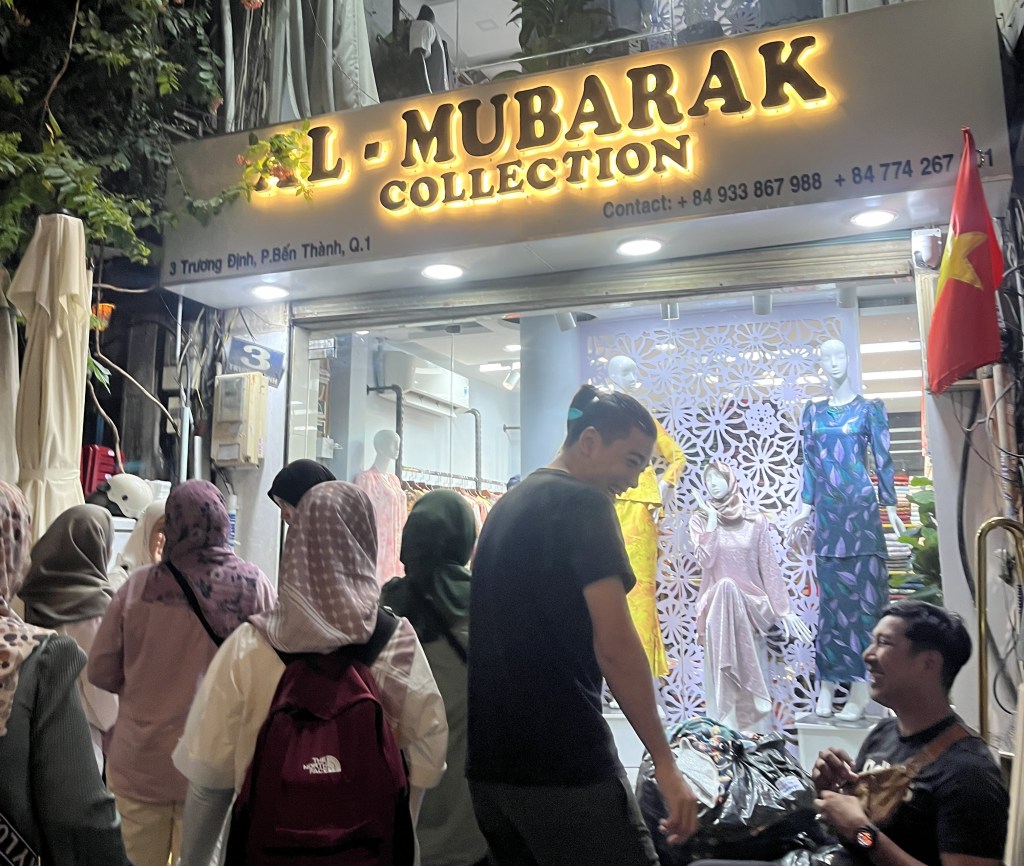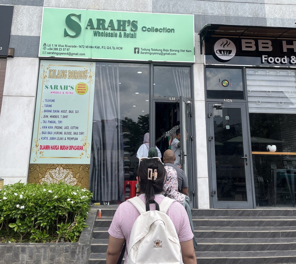 There were Muslim-friendly wholesale shops around Vietnam, so we hired a van for one day. We arranged for pick up from the airport including breakfast on the move and headed straight to shop. All these sellers can speak Malay and we could pay in Ringgit. Also, you are advised to wear easy to remove shoes.
