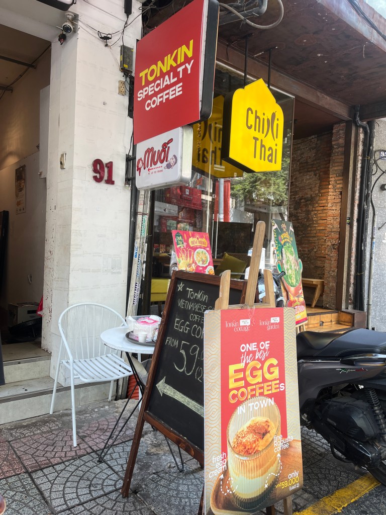 We were randomly walking and this young lady offered some egg coffee by the street. It was actually delicious, so we popped by the cafe.