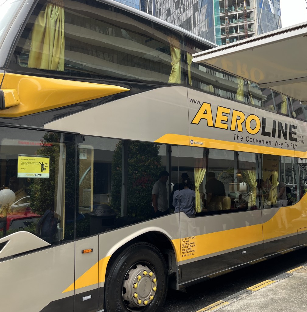 We wanted the luxury bus experience for our return trip. After some research, we decided on Aeroline, a direct point-to-point service from KL to SG. It was a lot cheaper than a flight, plus the seats had so much leg and butt space; and you get a blanket, a basic lunch bento set, a tea break, and even on-board entertainment (movies, games, music).