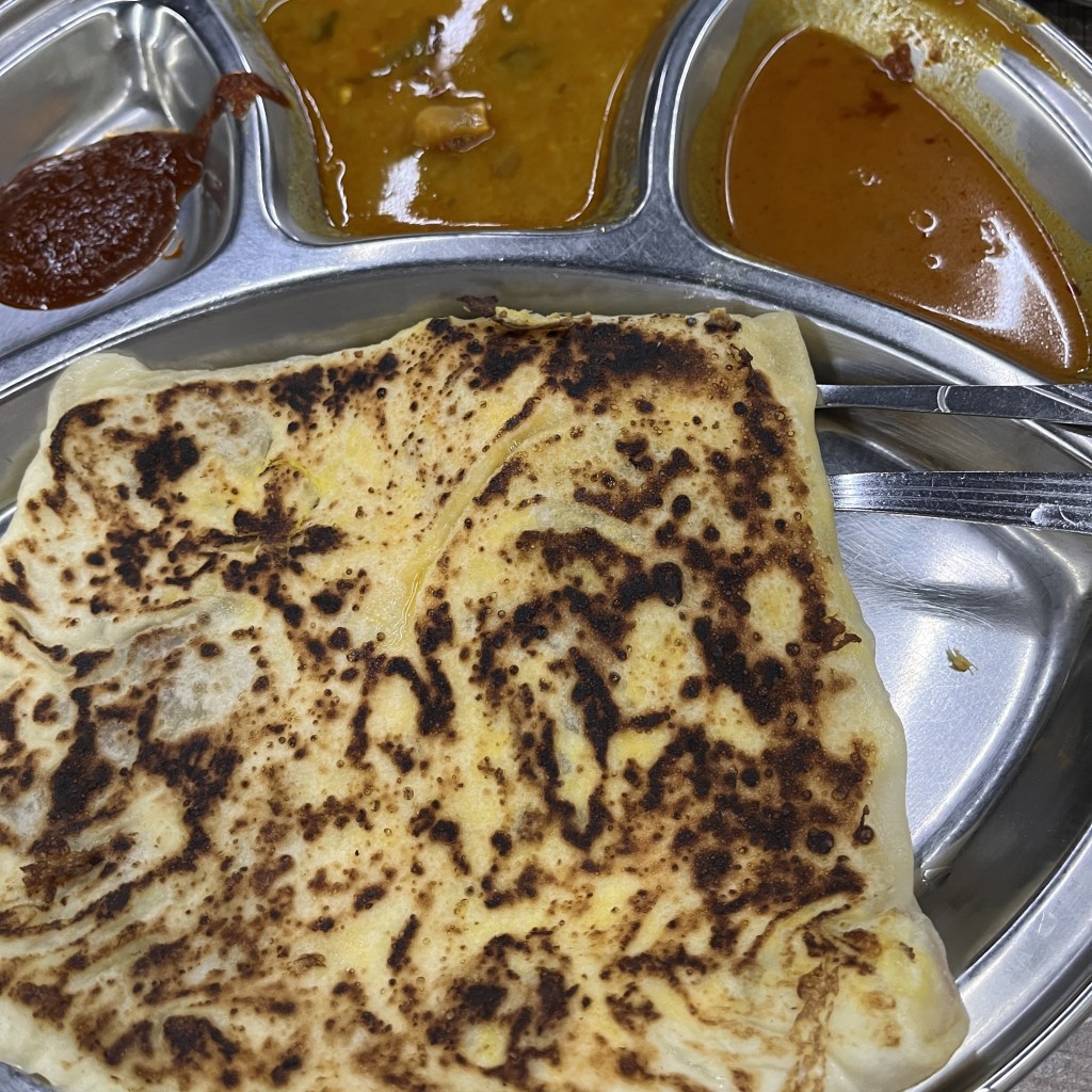 On Day 2, we roamed the streets behind the hotel for a no-frills breakfast. We spotted street vendors selling nasi lemak and noodles and various restaurants. Eventually decided on this mamak shop, which looked clean and served a variety. Of course, we had to get the roti canai from an Indian Muslim restaurant!