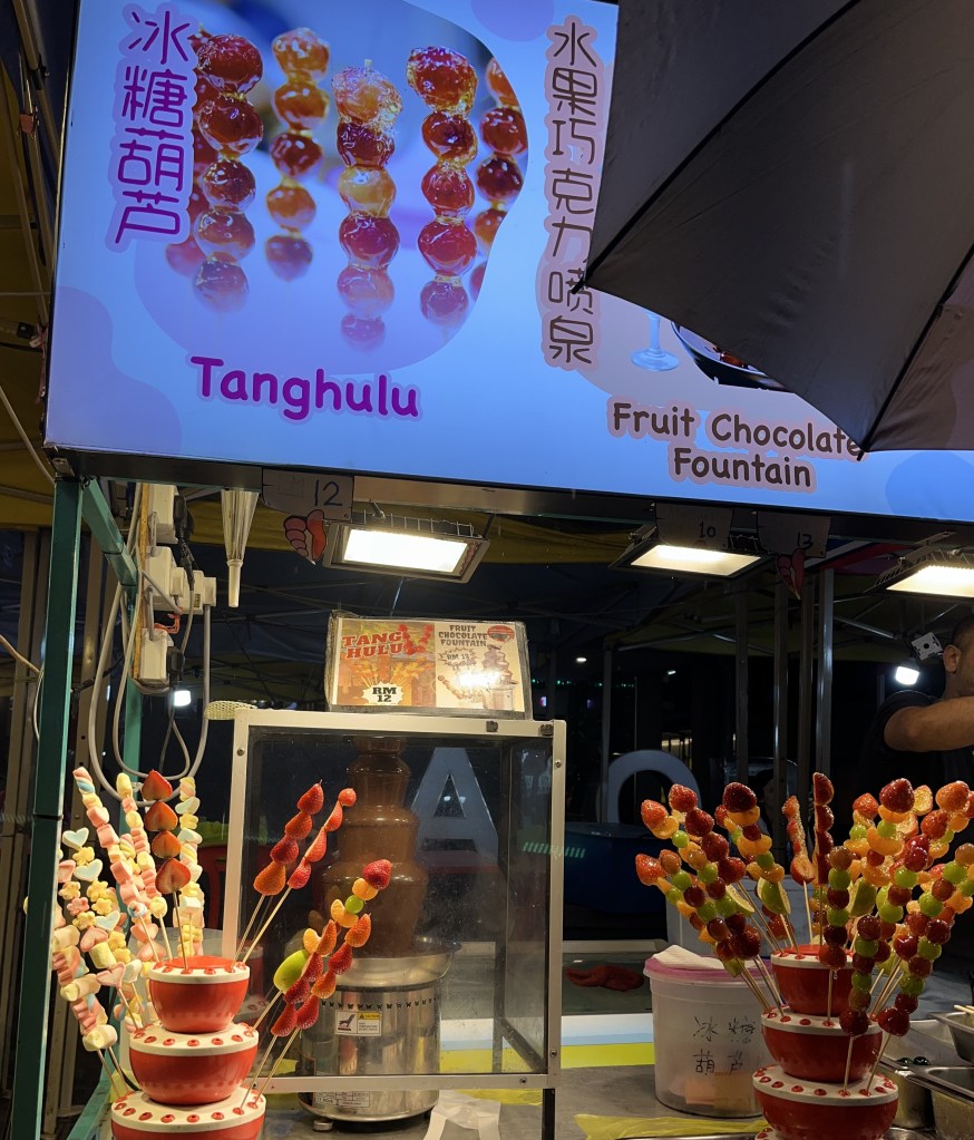 Expect a lot of snacks along Jalan Alor food street. There were multiple durian shops, but we observed that the prices and quality were better if you walked further instead of those by the entrances.
