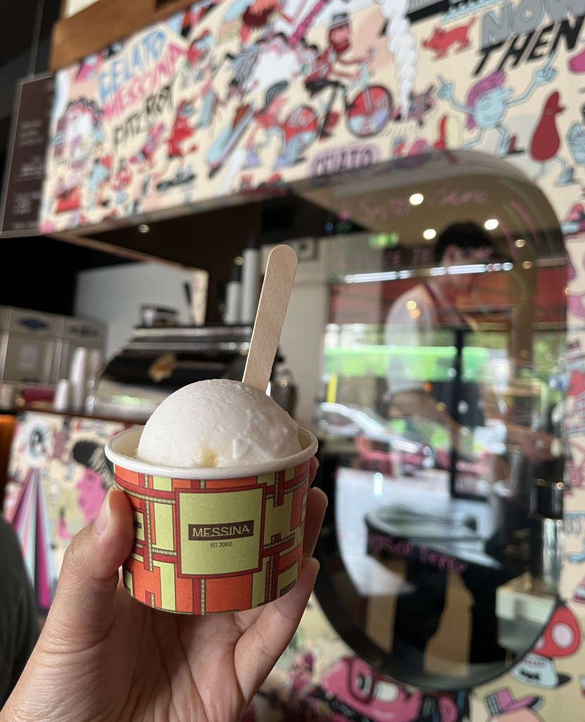 The nearest Gelato Messina for us was in Fitzroy, which was about a 20 minute ride away. We walked a fair bit from the Rose Street Artist Market to visit this celebrated shop. It was top in terms of variety – with 40 unique flavours and also coffee and milkshakes. The staff were friendly and gave us testers. They also have seasonal flavours.