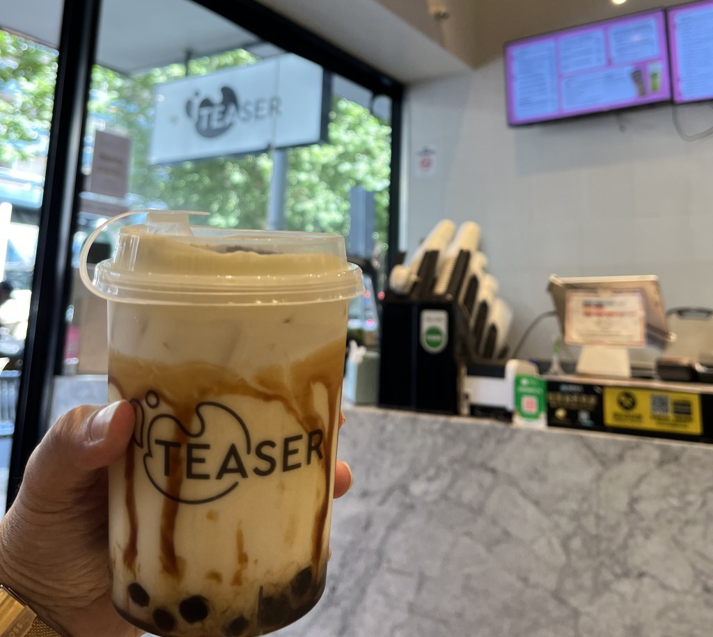 Teaser sold milk teas, fruit teas, smoothies, with brown sugar and macchiato versions. The pearls here were big and chewy!