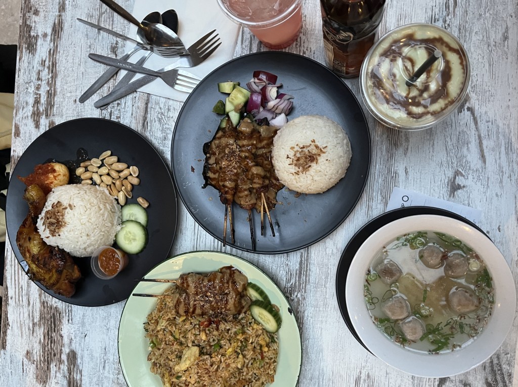 We tried the bakso soup, chicken satay set, fried rice and nasi ayam bakar which cost about S$80 with three drinks. The serving size was large, and the sambal was actually spicy.