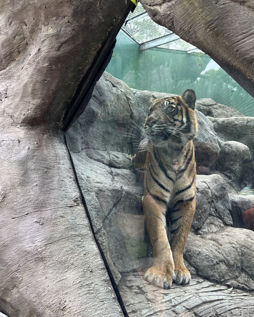 There were relaxing things to do too, including a skating rink, mascot performances in winter outfits, photo spots, a Dreamworld sightseeing train, snow soap bubbles to play with at fixed timings, and game booths. The must visit is the wildlife park, which had majestic tigers standing very near to the glass walls that took my breath away.