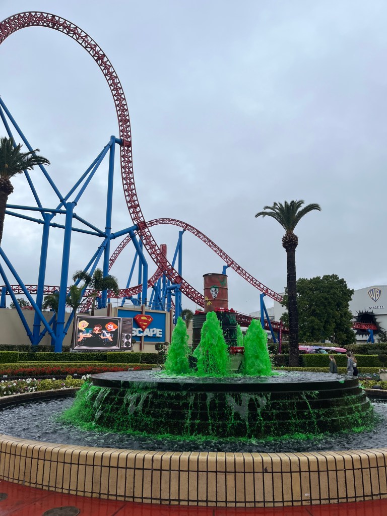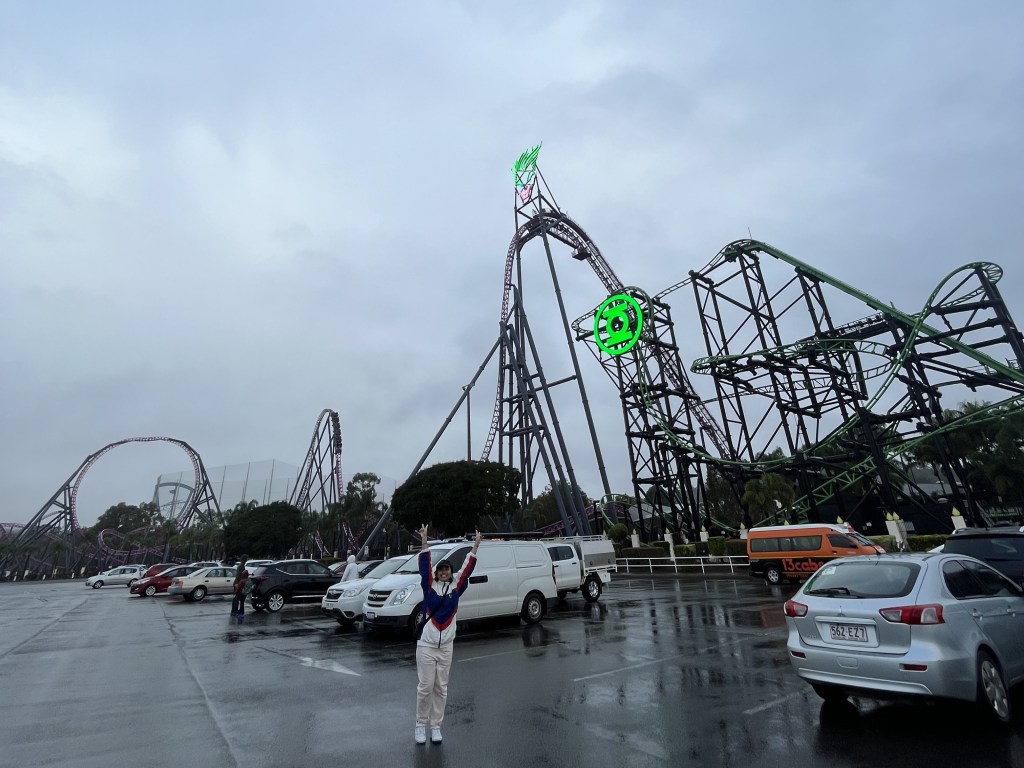 We were also lucky that the rain did not stop us from having our Superman moment at Superman Escape, a high-speed launch coaster that goes from 0 to 100 km/h in just two seconds. They had to do a few rounds of testing in the light rain before they re-allowed entry, and we managed to ride it back to back while the crowds were not aware that it was back in service.