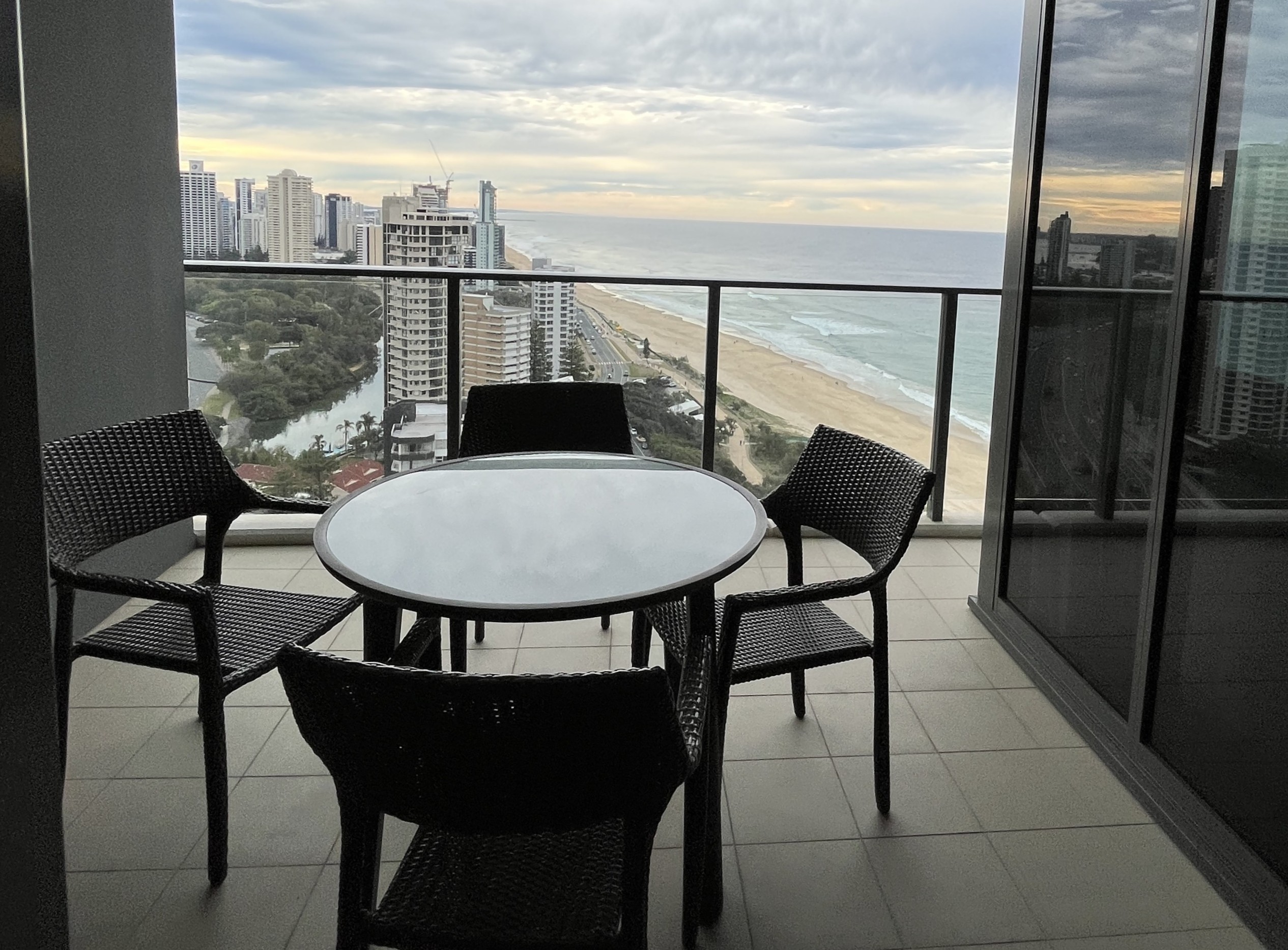 This apartment was a stone’s throw away from Surfers Paradise Beach, and it was so fun because the beach was not crowded. Best part was that our room was on a high floor, so we got a crazy ocean view, cityscape, and sunset views all in one! The apartment had a full window glass pane, with a balcony.